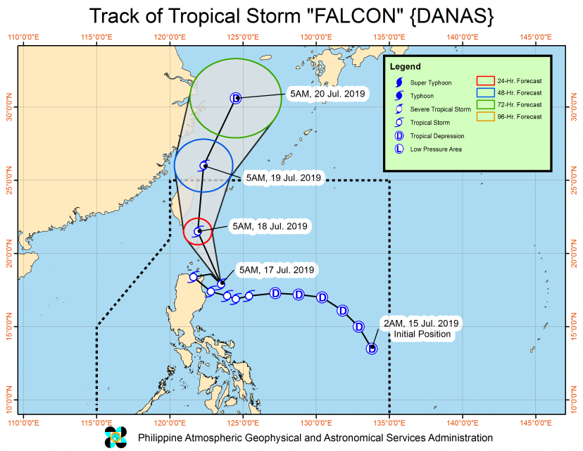 PAGASA said that “Falcon” made landfall over Cagayan earlier but then “looped” and as of 7 a.m. the center of the storm was estimated at 200 kilometers east of Aparri, Cagayan.