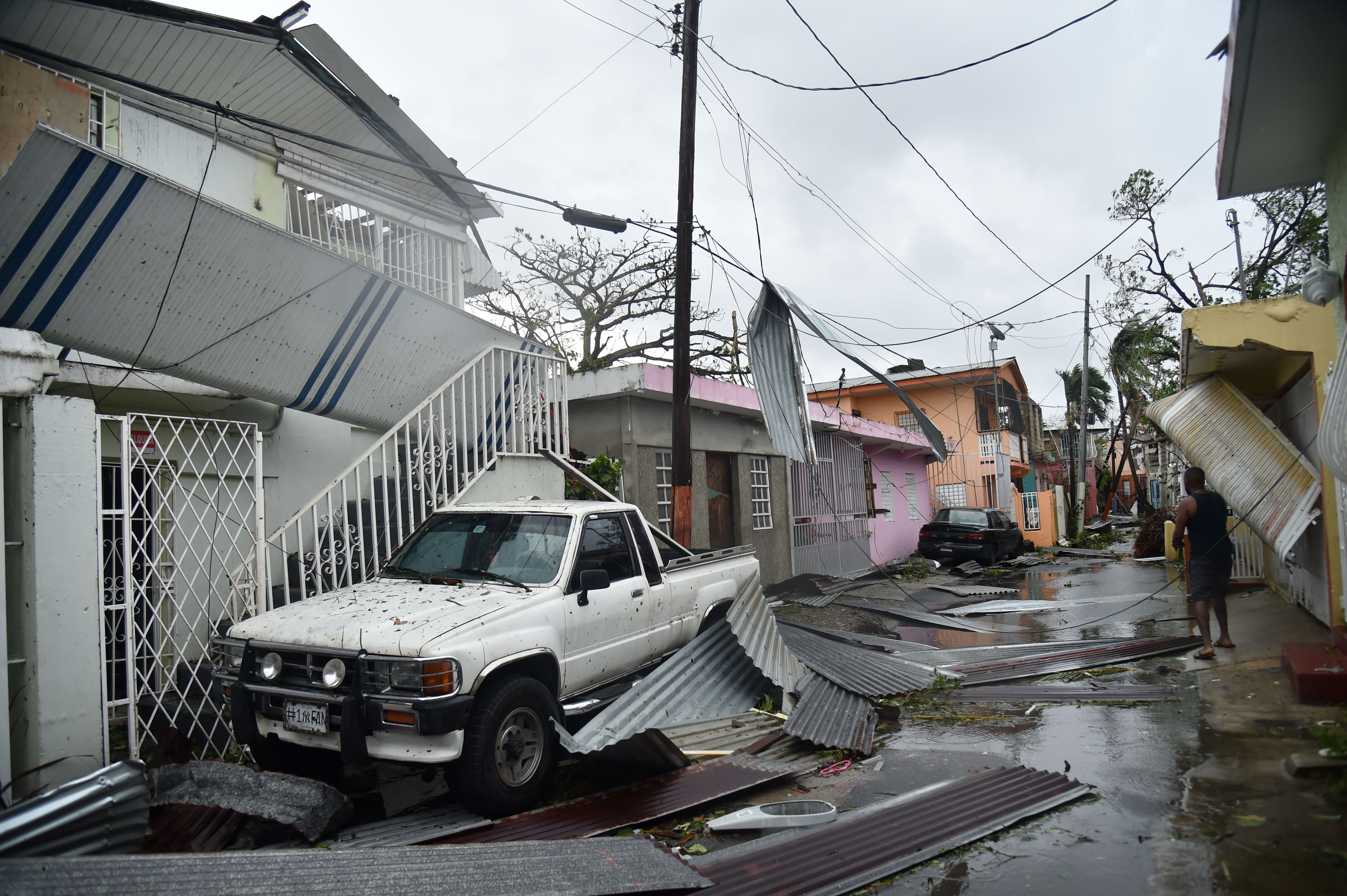 In the French territory of Guadeloupe, one person was killed by a falling tree as Maria hit, while another died on the seafront.
