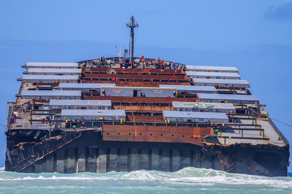 The MV Wakashio ran aground on a coral reef off the Indian Ocean island on July 25 and began leaking oil two weeks later, prompting a race against the clock to pump all the fuel off the bulk carrier before it broke in two.