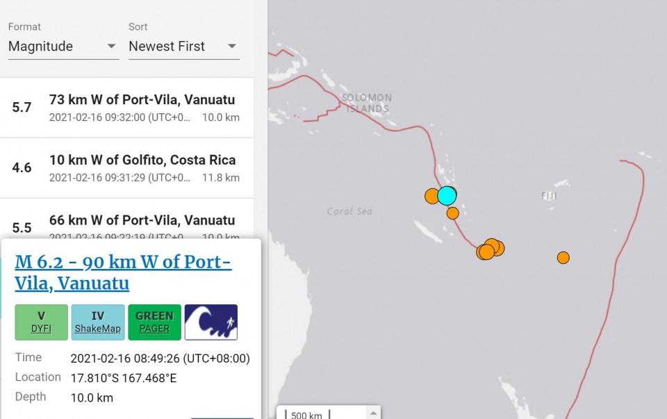 PORT VILLA, Vanuatu (AFP) — A strong earthquake struck Vanuatu’s capital Port Vila on Tuesday, with eyewitnesses reporting violent shaking and the US Geological Survey measuring a shallow 6.2-magnitude quake just off the South Pacific island’s coast.