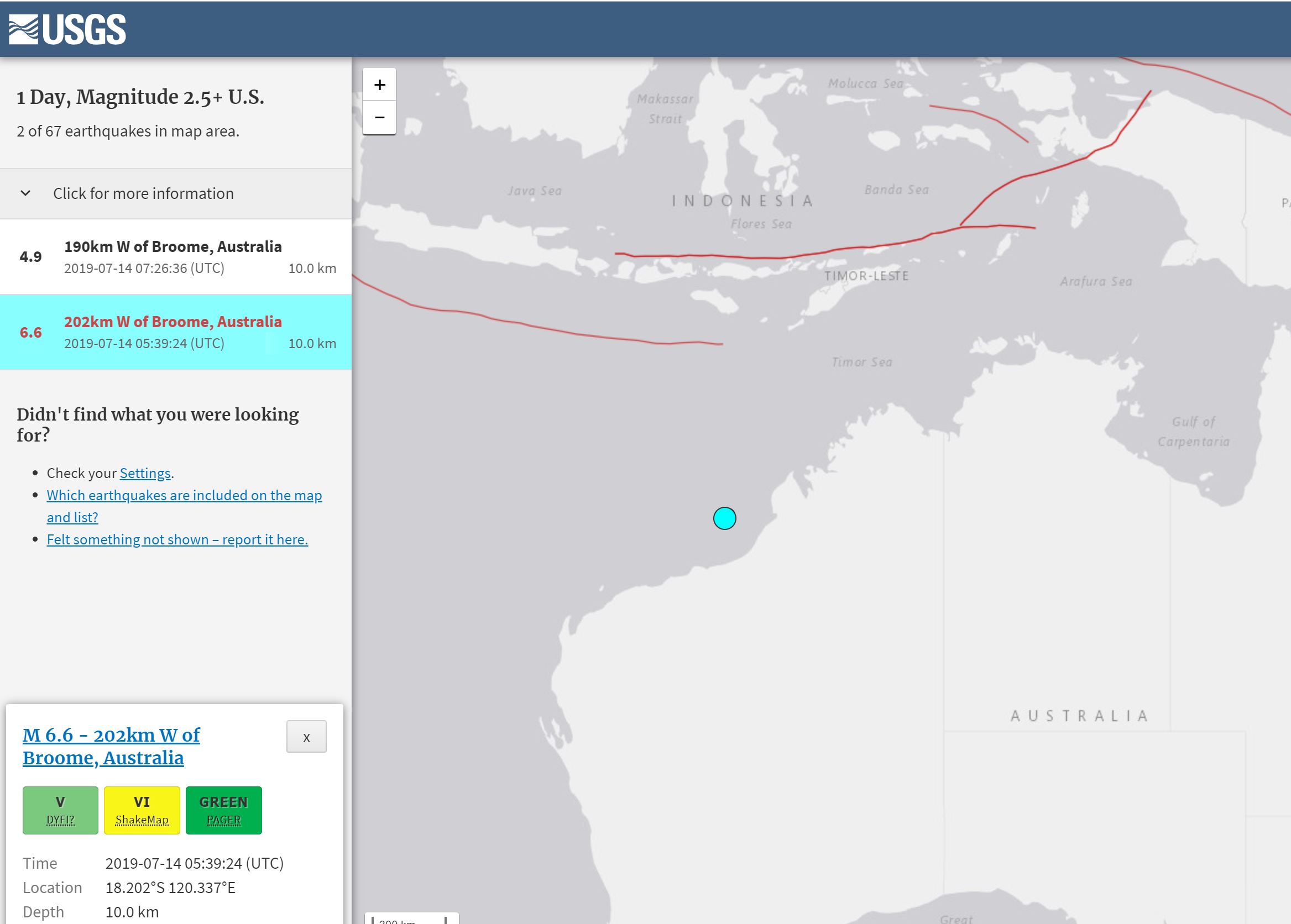 Sergeant Neil Gordon of the Broome police department said the quake rattled the city for more than a minute.