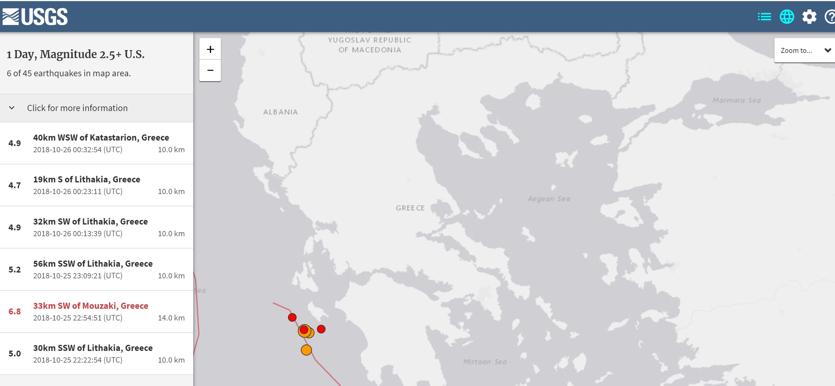 It struck off the southern part of the island, also known as Zakynthos, in the Ionian Sea at 1.50 am (2250 GMT Thursday), according to the US Geological Survey (USGS).