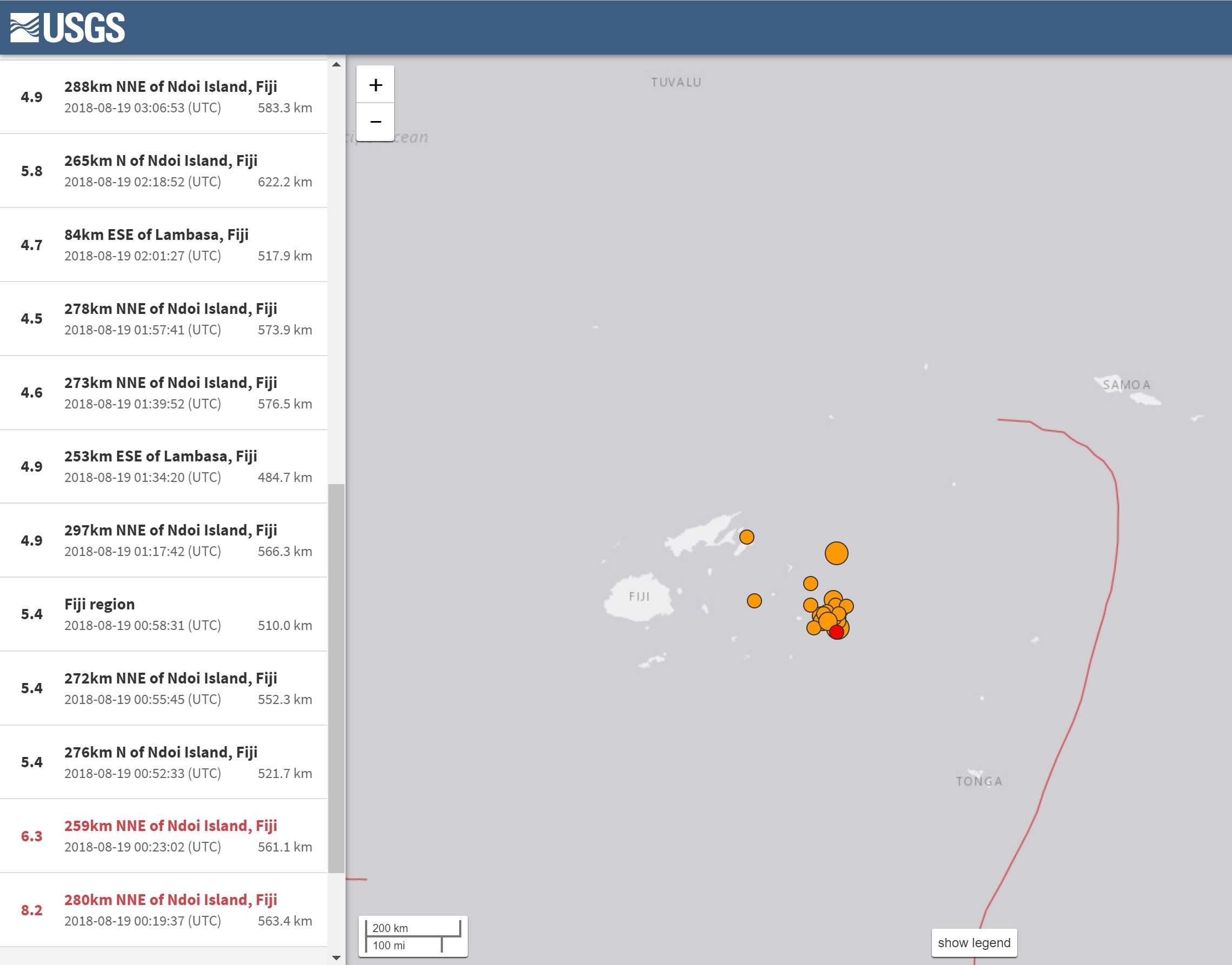 The government’s Seismology Unit issued a statement saying the earthquake “does not pose any immediate threat to the Fiji region due to its deep depth”.