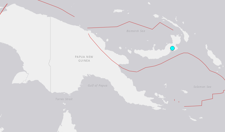 The quake struck at 20:06 GMT Sunday with an epicenter on land 131 kilometers (81 miles) southwest of the city of Kokopo, and at a depth of nearly 53 kilometers, the USGS said.