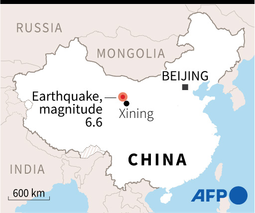 The epicentre of the quake, which struck at about 1:45 am (1745 GMT) at a shallow depth of 10 kilometres (six miles), was located about 140 kilometres north-northwest of the city of Xining, US seismologists said.