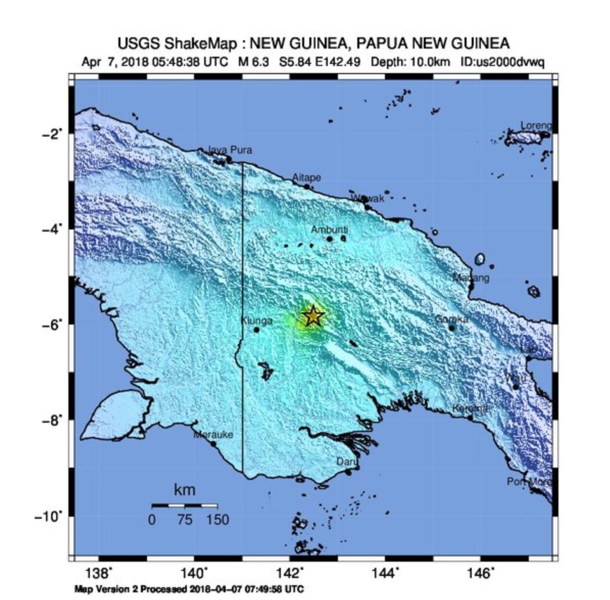 The quake struck at a depth of 10 kilometers (6.2 miles) some 195 kilometers west of the town of Mount Hagen, the US Geological Survey said.