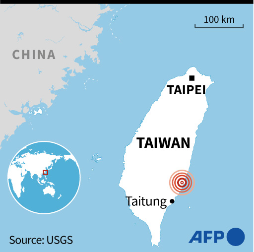 The quake hit at 2:44 pm (0644 GMT) about 50 kilometres (30 miles) north of the city of Taitung at a depth of 10 kilometres, the United States Geological Survey said.
