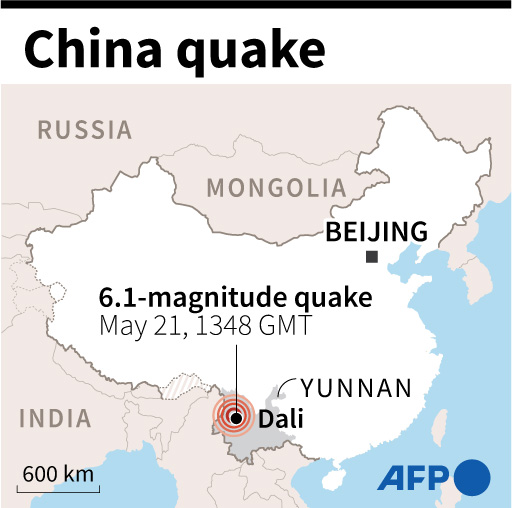 The Yunnan quake, which had a magnitude of 6.1, struck first at 9:48 pm Friday (1348 GMT) near the city of Dali, a popular tourist destination, the US Geological Survey said. It was followed by at least two aftershocks, USGS said.