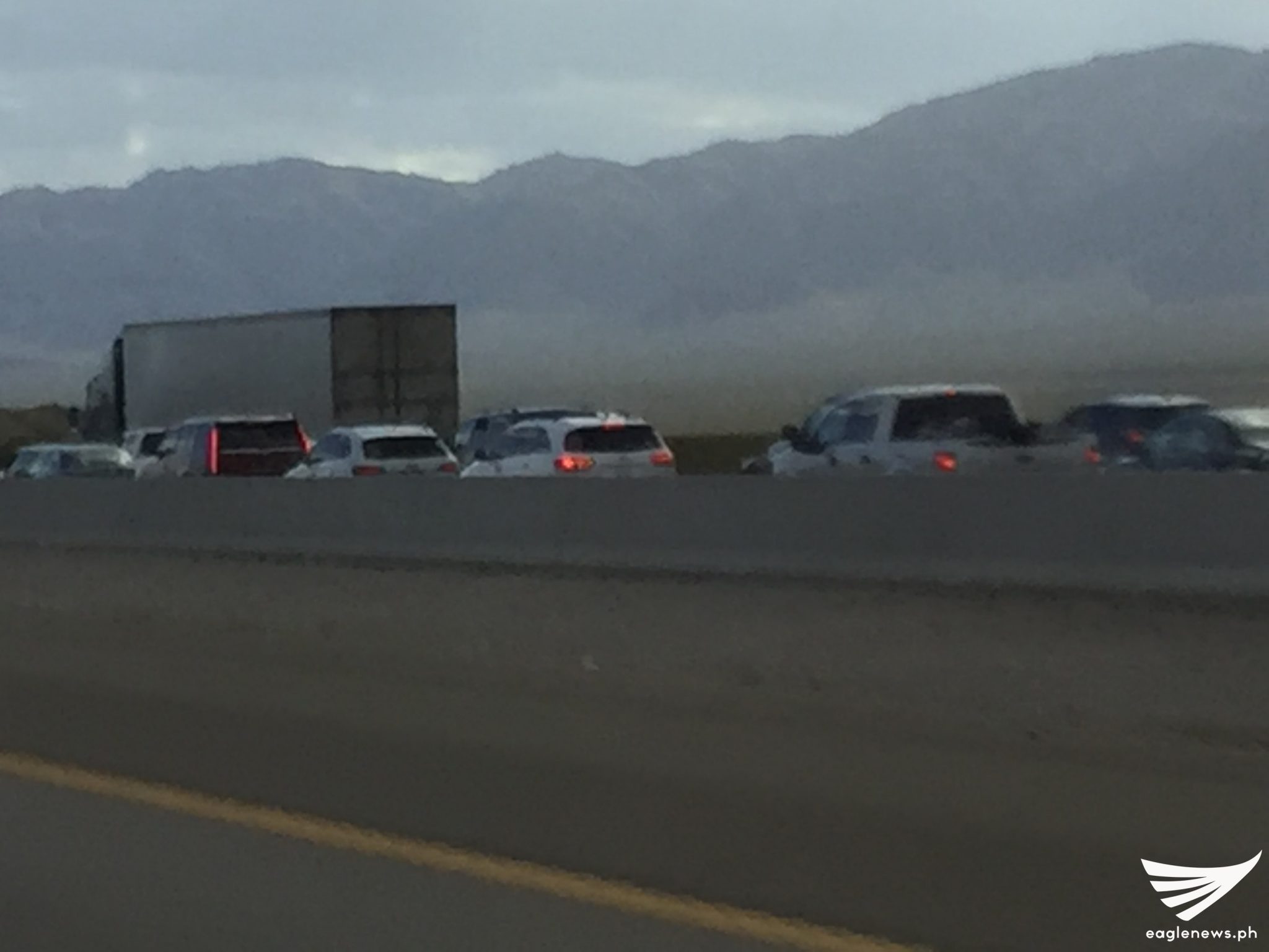The strong winds made for dangerous driving conditions along Interstate 15, the main highway that connects California to Nevada.