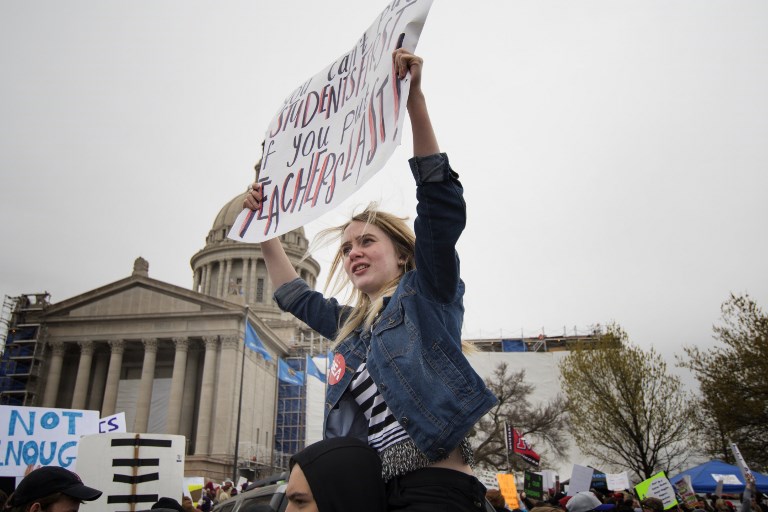 OKLAHOMA CITY, United States (AFP) — Students joined teachers in Oklahoma City Wednesday for a third day of protests demanding that state lawmakers increase funding for public schools after years of budget cuts.