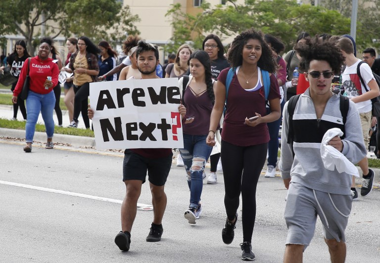 TALLAHASSEE, United States (AFP) — Angered by a shooting rampage that left 17 people dead at a Florida high school, students staged protests in several US cities on Wednesday to turn up the heat on President Donald Trump and lawmakers to take action on gun control.