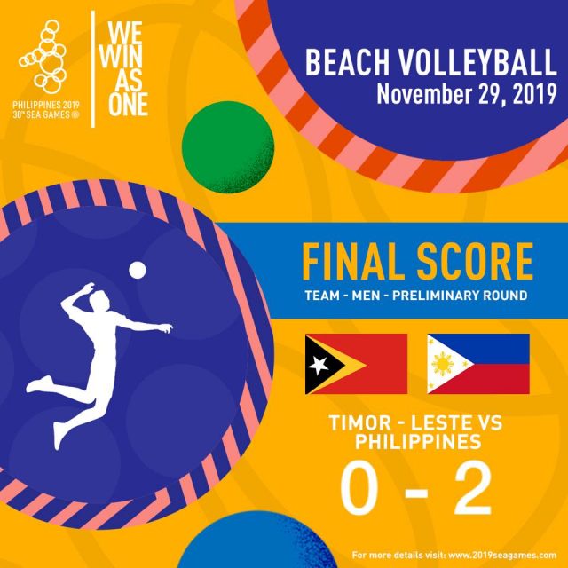 The men’s beach volleyball team, however, had a great start with the Philippine team, earlier in the day, winning 2-0 against Timor-Leste.