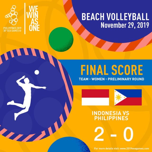 On Friday, one of the events held there was the preliminary round for the women’s beach volleyball event at the Subic Tennis Court. Indonesia beat Philippines in the game, 2-0.