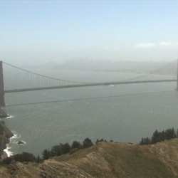 “So the system is a stainless steel net made up of wires, the wires are about five thirty seconds inch thick stretched very tightly between horizontal supports, the horizontal supports are tube members, about eight inches by eight inches and they extend out from the side of the bridge about twenty-three feet from the side of the bridge and they are located about twenty feet down from sidewalk elevation itself,” says John Eberle, deputy district engineer for the Golden Gate Bridge.