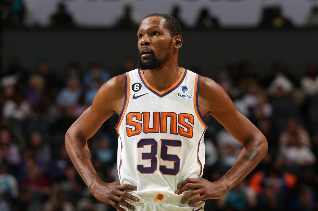 LOS ANGELES, United States (AFP) — Kevin Durant shook off pre-game jitters to score 23 points in his Phoenix Suns debut, helping his new team to a 105-91 victory in Charlotte that halted the Hornets’ five-game NBA winning streak.