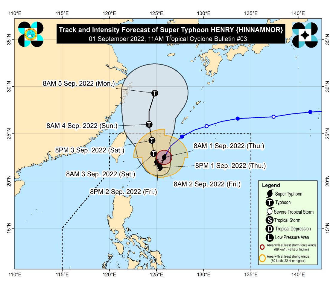 But super typhoon Henry (Hinnamnor) because of its strength would cause “light to moderate with at times heavy rains” over Batanes Thursday late afternoon through evening.