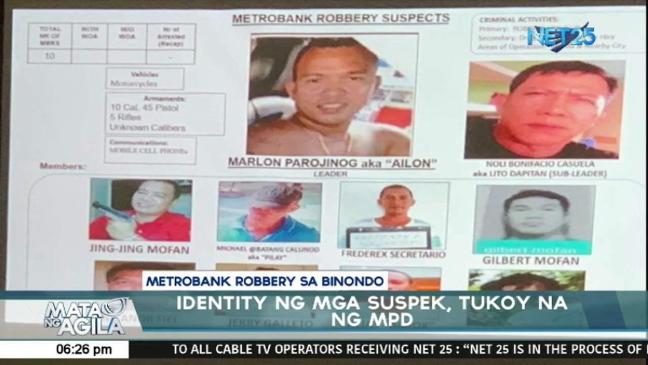 (Eagle News) – The Manila Police District has already identified the suspects in the daring daylight Metrobank robbery in Binondo, Manila based on the CCTV footages obtained outside the bank.