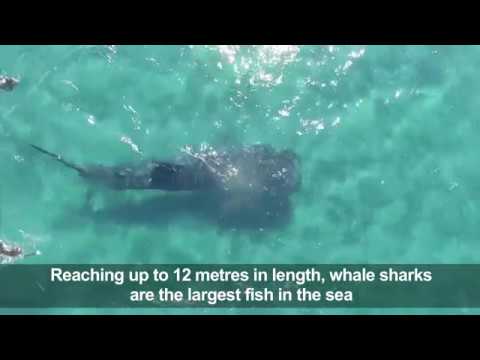 The whale part of the fish’s name is a misnomer. They are indeed sharks, but the non-dangerous carpet shark type that feeds on small animals on the seabed. They are around nine meters (30 feet) long and weigh some nine tons.