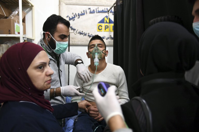 DAMASCUS, Syria (AFP) — Syria’s regime has accused armed groups of carrying out a “toxic gas” attack that left dozens of people struggling to breathe and prompted government ally Russia to launch retaliatory air strikes on Sunday.