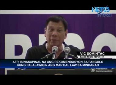 QUEZON City, Philippines (Eagle News) — The Armed Forces of the Philippines (AFP) is finalizing its recommendation on whether to extend martial law in Mindanao or not. “Martial law, when it was imposed, provided a set of conditions that we should meet at the end of martial law,” AFP spokesman Brigadier General Restituto Padilla said in an article posted by CNN Philippines “The Source.” “Now whether those conditions were met, whether those objectives were achieved […]