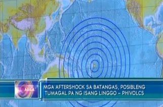 (Eagle News) — Sunud-sunod na aftershock ang naranasan ng malaking bahagi ng Batangas at mga kalapit lalawigan makaraang tumama ang 5.5 magnitude na lindol sa bayan ng Tingloy, Batangas kagabi, Abril 4 sa ganap na 8:58 PM. Mula sa magnitude 5.4, itinaas ng Philippine Institute of Volcanology and Seismology o Phivolcs ang magnitude ng lindol sa 5.5. Naramdaman ang lindol sa lakas na Intensity V sa Batangas City, Malvar at Calatagan sa Batangas. Intensity […]