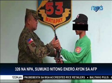 QUEZON CITY, Philippines (Eagle News) — The Armed Forces of the Philippines (AFP) reported that a total number of 326 members of the New People’s Army (NPA) surrendered to the government last month. Despite the large number of rebels who surrendered, AFP Spokesperson General Edgar Arevalo admitted that it is still too early to say that the AFP can defeat the rebel group. He said that the unprecedented number of surrenderrees could be attributed to […]