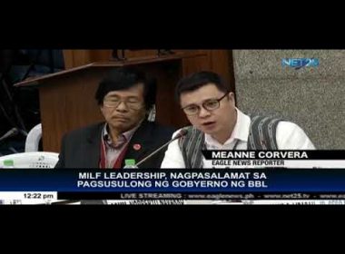By Meanne Corvera Eagle News Service The Moro Islamic Liberation Front on Thursday thanked the government for supporting and promoting the passage of a Bangsamoro Basic Law. MILF Chairman Al Haj Murad Ebrahim, who held a dialogue with Senators Sonny Angara, chairman of the committee on local government; Juan Miguel Zubiri, JV Ejercito and Risa Hontiveros in their camp in Sultan Kudarat Maguindanao, also expressed hope that the measure, once passed, will not suffer the […]