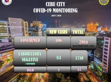 (Eagle News) – The Cebu City Health Department reported 2,988 total COVID-19 cases as of Tuesday, June 9, as more than 100 cases each day were reported in the city for the past three days. The new confirmed cases on Tuesday, June 9, were 106. There was also one virus fatality reported bringing the total COVID-19 deaths in the city to 33. The previous day, on Monday, June 8, the new cases added were 127. […]