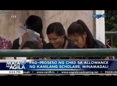 MANILA, Philippines (Eagle News) — Minamadali na ng Commission on Higher Education (CHEd) ang pagproseso sa scholarship allowance nito. Kasabay nito ay humingi rin ng paumanhin ang CHEd sa pagkaka-antala sa pagbibigay ng nasabing allowance sa mga faculty na apektado ng K to 12 program. Ayon sa CHEd, ang naging sanhi ng delay sa pagbibigay ng allowance sa mga scholar ay ang pagproseso sa mga dokumento. Ang internal system din aniya ng CHEd ay hindi […]