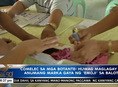 (Eagle News) — Nagpaalala ang Commission on Elections (Comelec) sa mga botante lalo na sa mga kabataan na huwag lalagyan ng anumang marka gaya ng ‘emoji’ ang balota para sa barangay at Sangguniang Kabataan elections. Dahil sa manu-mano ang botohan sa Lunes, Mayo 14, mga blangkong balota ang ibibigay kung saan isusulat ang mga pangalan ng mga ibobotong kandidato. Ayon sa Comelec, maibibilang na stray votes o hindi kikilanin na boto ang mga balotang may […]