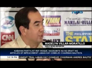 QUEZON CITY, Philippines (Eagle News) — Hours after the House of Representatives voted to impeach Commission on Elections Chairman Andres Bautista on Wednesday (October 11), Kabayan Party-List Representative Harry Roque submitted the draft of the articles of impeachment against the beleaguered poll chief. The articles of impeachment submitted by Roque were to support the impeachment complaint for graft and corruption, betrayal of public trust and culpable violation of the Constitution against Bautista. The six-page documents […]