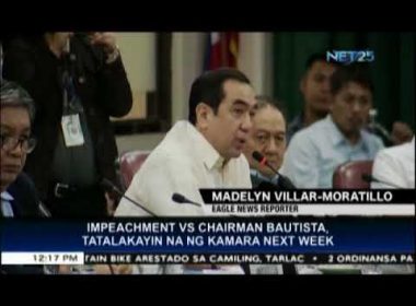 QUEZON City, Philippines (Eagle News) — The House of Representatives committee on justice has slated the first hearing on the impeachment complaint filed against Commission on Election Chairman Andres Bautista to next Tuesday, September 19. This is according to Oriental Mindoro Representative Reynaldo Umali, chair of the committee. The complaint filed against Bautista cites betrayal of public trust and culpable violation of the Constitution as bases for the impeachment. These were based Patricia Bautista’s allegations […]