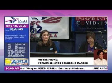 -Says danger of COVID-19 spread still there even under MECQ, GCQ- (Eagle News) – Former Senator Ferdinand “Bongbong” Marcos Jr., said his COVID-19 experience had made him to identify and “sympathize very closely” with the thousands who had been infected with the virus, and called on Filipinos to still be vigilant and mindful of health protocols as lockdowns are eased. “I sympathize with them very closely, kasi dumaan ako doon,” he said in an exclusive […]