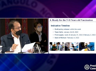 Plan is to have two sites per city in NCR, initially, and then expanded nationwide in pilot sites (Eagle News) – Starting February, the Philippine government will begin administering COVID-19 jabs to children aged five to 11 years as the specially formulated vaccines for this age group is set to arrive next week. Vaccine czar Secretary Carlito Galvez Jr., said that the pediatric vaccination could start on Feb. 4. He said that the National […]