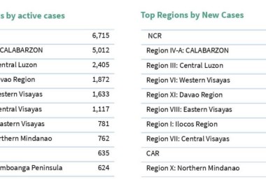 NCR, CALABARZON are top 2 regions with active COVID cases, and most cases per day, says DOH