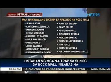 Authorities have already identified 36 of the reported 37 bodies recovered from the NCCC mall fire in Davao City. As of 2:40 a.m. Dec. 27, only one of the 37 bodies recovered over the weekend remains to be identified. Another missing person, the 38th, in the local government’s official list has yet to be found. In the official list, they named the 36 positively-identified victims as: 1. Sismar, Jeffrey 2. Bongcayao, Mary Louielyn 3. […]