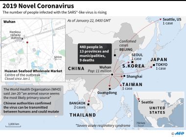 by Beiyi SEOW Agence France-Presse BEIJING, China (AFP) — A new virus that has killed nine people, infected hundreds and already reached the United States could mutate and spread, China warned Wednesday, as authorities scrambled to contain the disease during the Lunar New Year travel season. The coronavirus has caused alarm for its similarity to SARS (Severe Acute Respiratory Syndrome), which killed nearly 650 people across mainland China and Hong Kong in 2002-2003. In Wuhan, […]