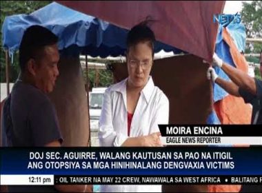 QUEZON CITY, Philippines (Eagle News) — Justice Secretary Vitaliano Aguirre on Monday, February 5 clarified that he did not order the Public Attorneys’ Office to stop its autopsy of the 14 alleged Dengvaxia victims. “I have no order to stop the autopsies,” Aguirre said This statement came after the call from former Health Secretary Esperanza Cabral to stop the PAO from conducting the autopsies because of the result of the University of the Philippines – […]