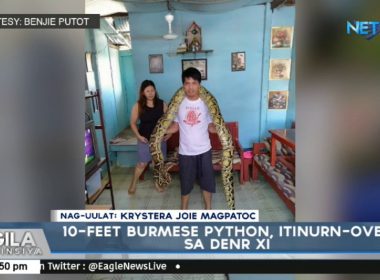 (Eagle News) — A man who kept a Burmese python as a pet for two years turned over the reptile recently to the Department of Environment and Natural Resources office in Davao City after it grew to a length of 10 feet. The Davao City resident, Benjie Putot, said that he found the python inside a bus in January 2018. Out of pity, he brought it home to take care of the reptile. It was […]