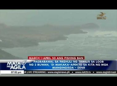 (Eagle News) — Hindi makaka-apekto sa kita ng mga mangingisda at stake holders sa Taal Lake ang dalawang buwang pagbabawal sa paghuli ng tawilis. Ito ang sinabi ni Department of Environments and Natural Resources-Batangas Officer Jose Elmer Bascos, dahil marami pa namang isda ang makukuha sa Taal Lake gaya ng karpa, tilapia at bangus. Ang lawa ng Taal ang siyang ikatlo sa pinakamalaking lawa sa bansa kasunod ang Laguna Bay at Lanao Lake sa Mindanao. […]