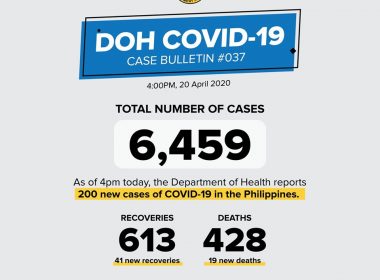 (Eagle News) –The number of COVID-19 recoveries in the country further increased on Monday, April 20, even as the Department of Health reported the number of COVID-19 cases had increased to 6459. According to the DOH, with the 41 new recoveries, the total number of patients who recovered from the virus was now at 613. The DOH reported 19 new deaths, bringing the total to 428. Earlier the Palace said the Philippines had yet to […]