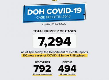 (Eagle News)–The number of coronavirus disease 2019 cases in the country has risen to 7294 after 102 new cases were reported. The Department of Health said of the 7294, 792 were recoveries. This includes the 30 new recoveries reported. Over 400, or 494 deaths were reported, including the 17 new deaths. President Rodrigo Duterte has extended the enhanced community quarantine in select areas, including Metro Manila, to May 15. Earlier, the DOH said that although […]