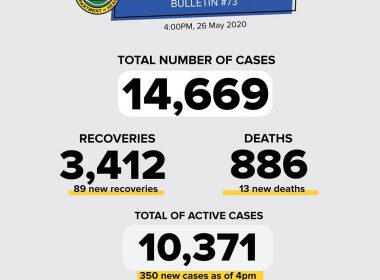 (Eagle News) — The number of coronavirus disease 2019 cases in the country has climbed to 14,669, after the Department of Health reported 350 new cases on Tuesday, May 26. The DOH, which had announced the ramping up of COVID-19 testing, did not say where the new cases came from. Recoveries, the agency said, rose to 3412, with the 89 new ones. The death toll is now at 886, including the 13 deaths. The national […]