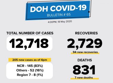 (Eagle News) — The number of coronavirus disease 2019 cases in the country climbed to 12718 on Monday, May 18, after the Department of Health reported 205 new cases. According to the DOH, of the new cases, 83 percent or 145 cases came from Metro Manila; 16 percent or 52 cases from other areas; and one percent of eight cases from Region VII. Recoveries rose to 2729 with 94 new ones. Deaths, on the other […]