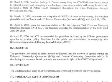 (Eagle News) – The Department of Health reminded employees to be mindful of physical distancing and other health protocols when they return to work, to further prevent the spread of COVID-19. “Sa napipintong pag-angat ng lockdown sa iba’t ibang bahagi ng Metro Manila at pagbabalik trabaho ng karamihan, mahalaga ang kooperasyon ng bawat isa sa pagsunod sa mga health protocol upang maiwasan natin ang isa pang outbreak at mabalewala ang ating mga pinaghirapan nitong mga […]