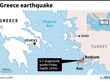 by Veronique Dupont and Sonia Bakaric in Theologos BODRUM, Turkey (AFP) — At least two people were killed on the Greek island of Kos Friday when a magnitude-6.7 earthquake shook the popular summer resort holiday destinations of the Dodecanese Islands in Greece and the Aegean coast of Turkey. The epicenter of the quake was approximately 10.3 kilometers (6.4 miles) south of the major Turkish resort of Bodrum, a magnet for holidaymakers in the summer, and 16.2 kilometers east […]