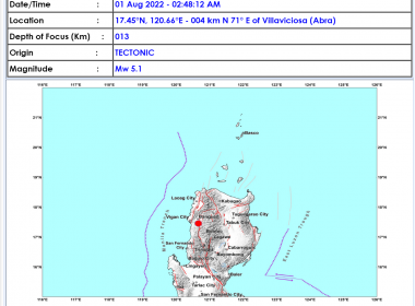 Tremor is strongest aftershock so far of the July 27 major quake in Northern Luzon (Eagle News) – A magnitude 5.1 quake shook the province of Abra again early Monday, August 1, about four kilometers northeast of the town of Villaviciosa, according to the Philippine Institute of Volcanology and Seismology (PHIVOLCS) It was felt in Vigan City and other areas of Ilocos Sur, Ilocos Norte and Mountain Province at intensity 5. The quake, of tectonic […]