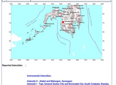 Intensity III felt in Digos, other areas (Eagle News)–A 4.3-magnitude earthquake struck Davao del Sur on Thursday, July 16. The Philippine Institute of Volcanology and Seismology said the quake, which hit at 8:34 a.m., had its epicenter six kilometers southwest of Kiblawan. It had a depth of six kilometers. The following intensities and instrumental intensities were recorded: Reported intensities: Intensity III – Kiblawan, Sulop, Hagonoy and Sta. Cruz, Davao Del Sur; Digos City Intensity II […]