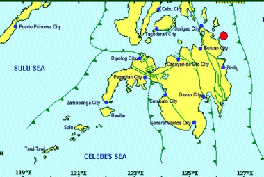 (Eagle News)–A 4.1-magnitude earthquake struck off Davao Occidental on Wednesday night, the Philippine Institute of Volcanology and Seismology said. PHIVOLCS said the quake, which hit at 9:43 p.m., had its epicenter 98 kilometers southeast of Jose Abad Santos. Depth of focus was 68 kilometers. An instrumental intensity I was felt in Malungon, Sarangani. No damage to property nor aftershocks were recorded.