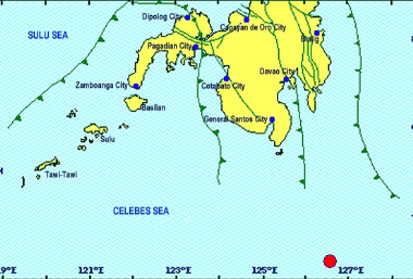 (Eagle News)–A 3.4-magnitude earthquake struck off Davao Occidental early Monday, Aug. 26. The Philippine Institute of Volcanology and Seismology said the quake, of tectonic origin, hit 301 kilometers southeast of Sarangani at 2:58 a.m. Depth of focus was 103 kilometers. No damage to property nor aftershocks were recorded.